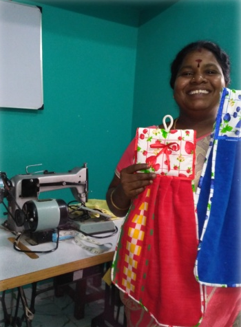 Her eyes swell with pride as she walks to the factory where Devi has to pack medicines. She is now able to earn around Rs.6000/- per month (about 100 USD). Devi, a home maker is from Tondiarpet community. She has twin girls who are in their primary school. Her husband was a daily wage earner, but could not get work on a daily basis due to lack of skill. She was always eager to earn some income for her family especially for her twin girls and their education. She was very apprehensive even to go out and talk with other women.