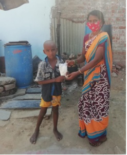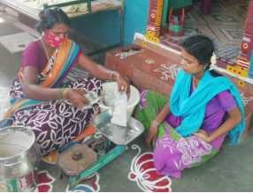 During this period of lockdown, we wanted to distribute nutrition powder to the children in the community. Selvi gladly volunteered to take the responsibility to buy the raw materials, prepare, and distribute the nutrition powder to the 24 needy children in her community.