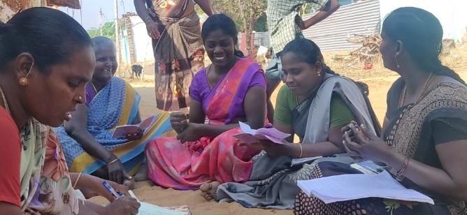 Ponselvi (3 rd from right) is a housewife from Sembaruthi Transformation group from Papakulam – a rural community in the southern part of Tamil Nadu. She said that, “before joining here I was always scared to come out of my house”, Ponselvi also have some fear to meet new people and that itself caused her to remain at her house for a long time, She said that, “whenever I face a new person I will feel anxiety”, by the help of her close neighbors she joined WISHALL transformation groups , where she got opportunity to meet new people, and she started to participate in weekly group meetings , she said that, “After meeting new friends in TG meetings, who socialize with me without any resistance, all my anxiety faded away , now I can talk with anyone without any fear , Thanks to WISHALL Transformation group.”